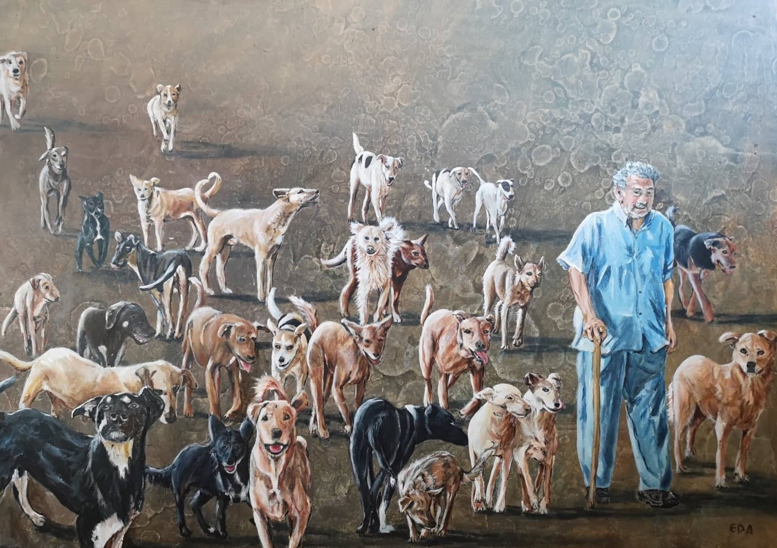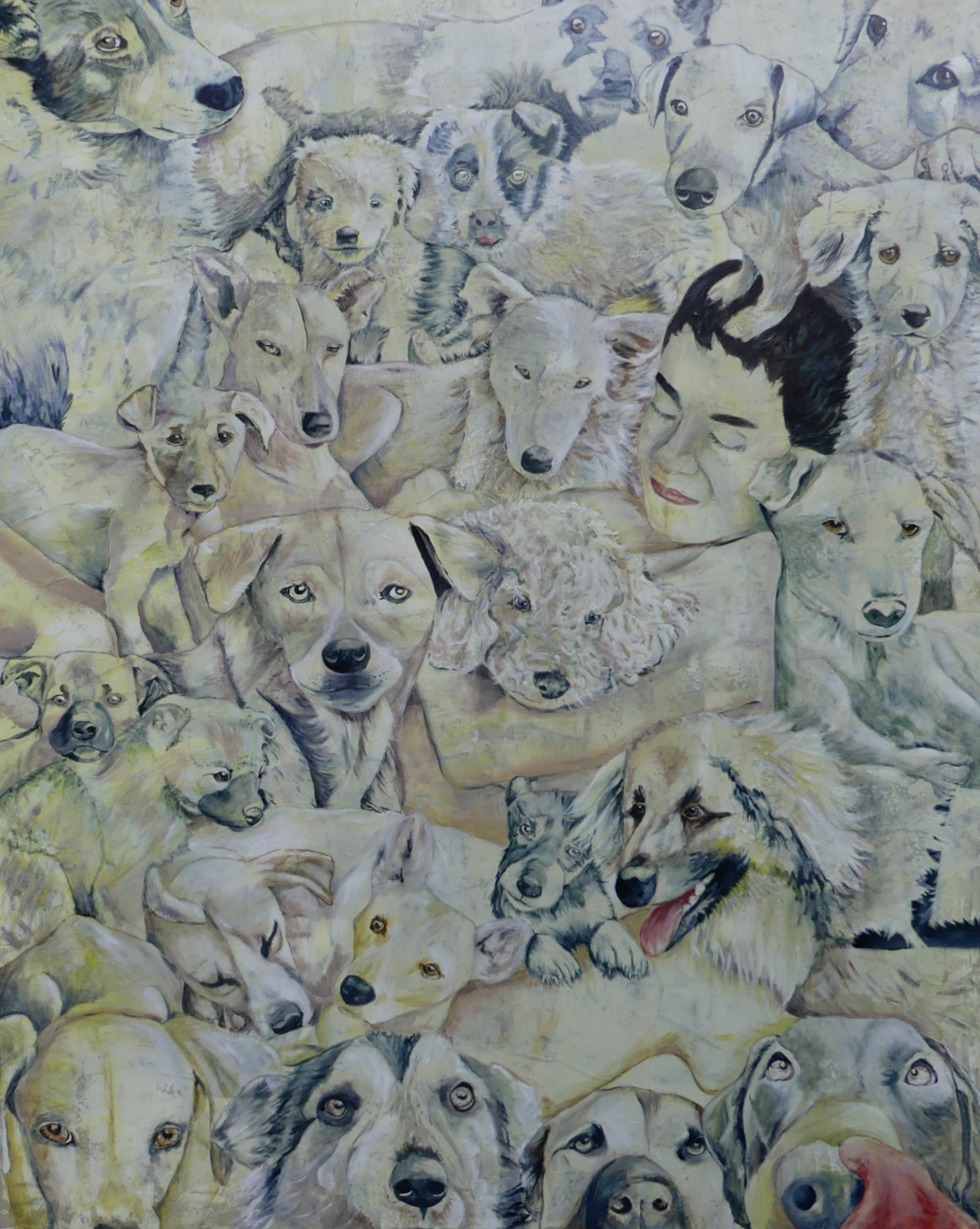 Je me suis peinte entourée de chiens errants ou rescapés, Le but était de les accueillir au moins à travers une peinture.lire le billet ❯