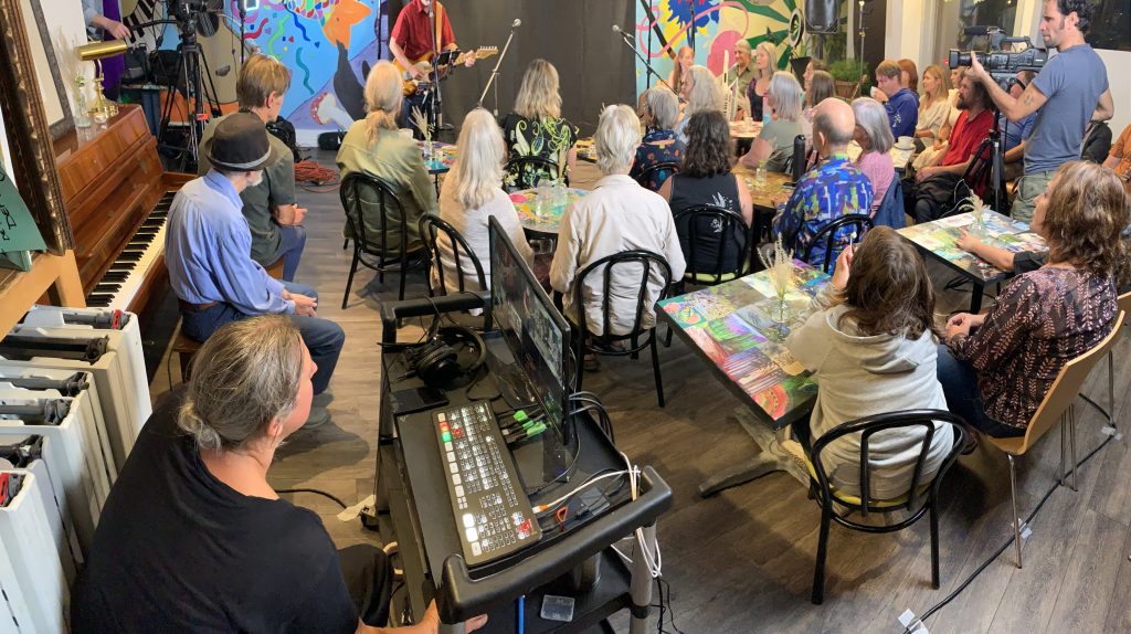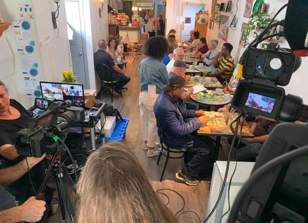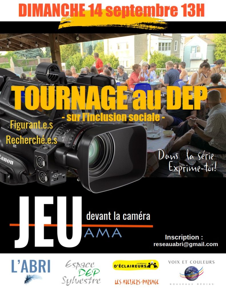 Le 14 décembre dernier, nous avons consacré une pleine journée au tournage d’une vidéo sur l’inclusion sociale à l’Espace DEP Sylvestre. Il s’agissait essentiellement de tourner 4 blocs représentatifs de la vie communautaire au DEP, soit l’Espace café-rencontre, les activités en cuisine, les soupers-partage sur la terrasse et les présentations sur scène en soirée!