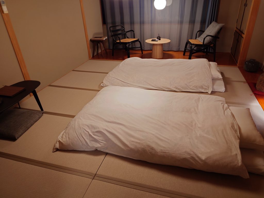 L’Auberge ne contient que 5 chambres, toutes identifiées par un nom plutôt qu’un simple numéro. Notre chambre s’appellait MATSU