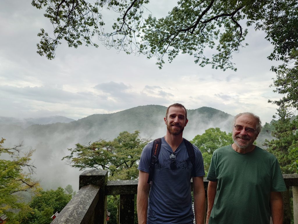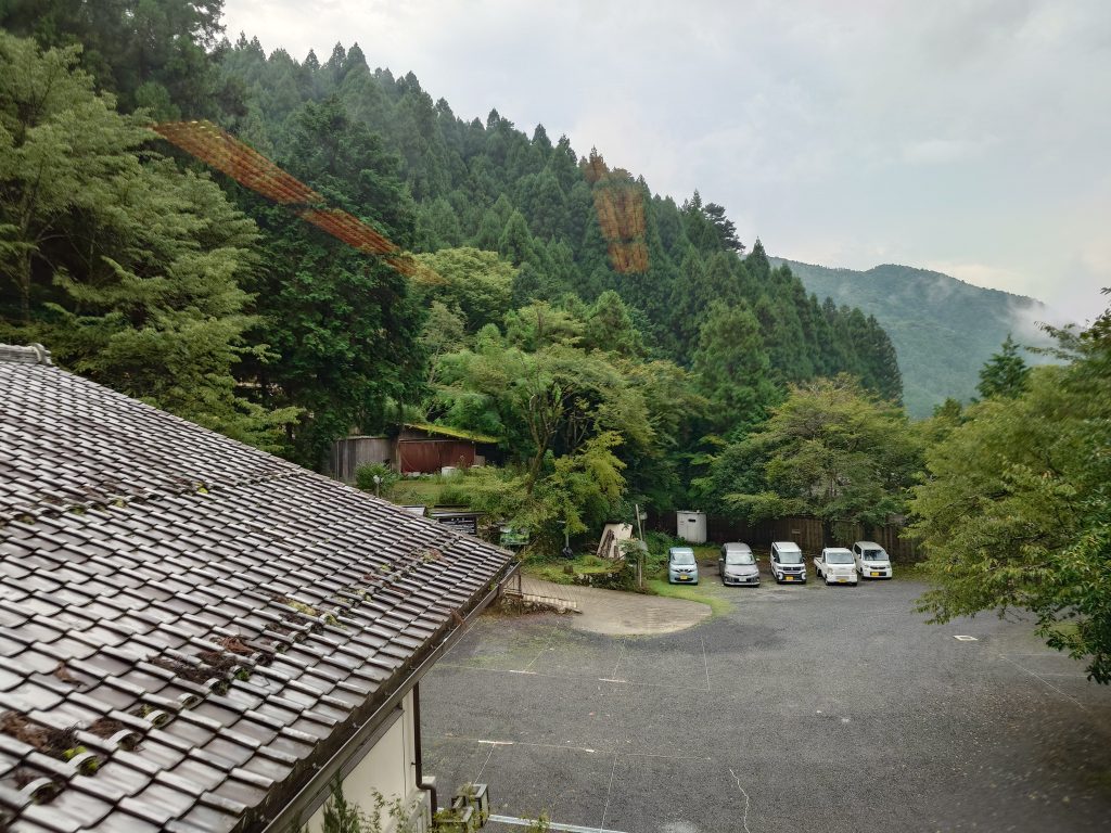 3. Au Japon : MATSU ! Plus joyeusement, au milieu de notre voyage au Japon, mon fils et moi nous sommes payés un séjour spécial d’une nuitée au Kurawa Onsen, un ryokan (une auberge de type traditionnel) dans le village de Kurawa, dans la montagne à 30 minutes de train au nord de Kyoto. On y dort dans des chambres au sol en tatamis*, sur des futons (assez confortables dans ce cas-ci) qui ont été déployés dans la chambre pendant que nous nous régalions à la salle à manger d’un souper à cinq ou six services. Et le (ou les) Onsen, ce sont les bains thermaux, chauffés par une source thermale très chaude. À cet endroit, il y avait des bains intérieurs (séparés pour hommes et femmes) où on se plonge nus, et même des bains extérieurs, donnant sur la forêt et la montagne environnante. Un très bel endroit !