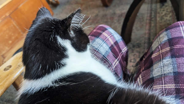Au début, j’étais catégorique: pas de chat à ma place, pas de chat dans ma face! Mais Lucy est tranquille, elle s’approche délicatement. Après un certain temps, à force d’insister, de s’insinuer, Lucy pouvait venir sur mes genoux. Mais je la flattais pas! Pas question, ça fait trop de poils partout. Lucy ne s’en plaignait point, elle ronronnait.